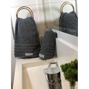 A toalha Essence também se destaca pelo seu design moderno. Com um lindo ondulado na borda e detalhes em dourado, essa toalha complementará a decoração do seu banheiro, adicionando um toque de elegante ao ambiente.