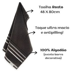O que vem na embalagem: 01 Toalha de Rosto, tamanho 48cm x 80cm Cor: Cinza Carbono 01 Toalha de Banhão, tamanho 150cm x 86cm Cor: Cinza Carbono Gramatura 500g/m²