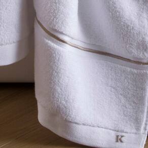 Modelo com inspiração na linha Casa Zara. Seu acabamento com bordado festonê e barrado de 3cm exibe o toque refinado com a grife K bordada, adicionando uma elegância discreta que valoriza qualquer ambiente. Feita com costura dupla, a Toalha Lázio é pensada para oferecer durabilidade e resistência, enquanto sua estrutura em filamento zero twist proporciona uma maciez incomparável.