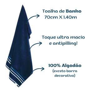 O que vem na embalagem: 01 Toalha de Rosto, tamanho 48cm x 80cm Cor: Azul Naval 01 Toalha de Banho, tamanho 140cm x 70cm Cor: Azul Naval Gramatura 500g/m²