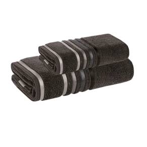 O que vem na embalagem: 01 Toalha de Rosto, tamanho 48cm x 80cm Cor: Cinza Carbono 01 Toalha de Banho, tamanho 140cm x 70cm Cor: Cinza Carbono Gramatura 500g/m²