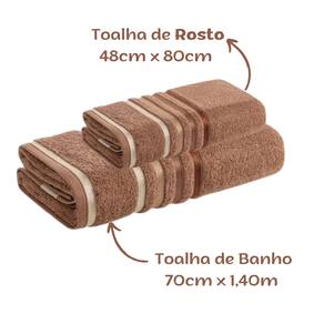 01 Toalha de Rosto, tamanho 48cm x 80cm Cor: Marrom 01 Toalha de Banho, tamanho 140cm x 70cm Cor: Marrom Gramatura 500g/m²