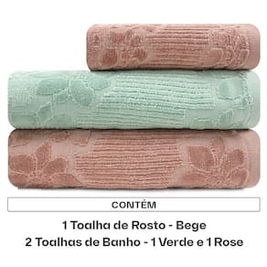 Este Kit Contém: 02 Toalhas de Banho (70cm x 135cm) 01 Toalha de Rosto (48cm x 80cm)