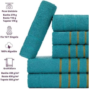 Composição - 2 Toalhas de Banho + 2 Toalhas de Rosto + 2 Tapete PisoGramatura - 330 G/m Peso Toalha de Banho - 290 a 300 Gramas Peso Toalha de Rosto - 110 a 120 GramassTamanho Toalha de Banho - 70x130 cm Tamanho Toalha de Rosto - 45x70 cm Fio - 16/1