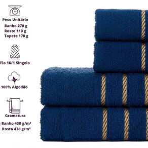 O tingimento é reativo deixando a Toalha Montreal com cores modernas e vivas, por ser reativo não tem o risco de soltar tinta. Essa toalha contém a barra decorada em dourado para dar um toque de modernidade e luxo ao seu Ambiente.