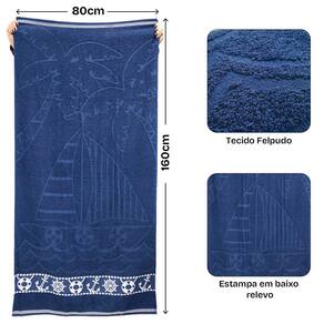 Seus momentos de diversão também merecem uma toalha de qualidade! Com tecido 100% algodão premium, ela garante toque macio, conforto e um visual clássico graças à estampa em baixo relevo e ao bordado náutico, que combinam estilo retrô e sofisticação.