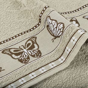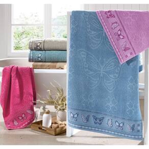 JOGO DE TOALHAS CINDYA Toalha Cindy tem um toque é macio como nuvem, mas o que realmente encanta são os delicados desenhos de borboletas, que trazem uma leveza visual ao seu banheiro. Não é apenas sobre funcionalidade; é sobre estilo e personalidade na hora mais relaxante do seu dia.Quantidade de Peças e Medidas Aproximadas:1: Toalha de Banho 1,35m x 68cm1: Toalha de Rosto 46cm x 70cmMaterial e Composição:100% Algodão e Gramatura 340g/m²Informações Específicas:HipoalergênicoLavar antes de usar pela primeira vez para retirada de resíduos de fabricaçãoNão utilizar amaciantes nas primeiras lavadasNão usar alvejantesCores escuras devem ser lavadas separadamenteEvite lavar juntamente com tecidos abrasivos para evitar o surgimento de bolinhasInformações Gerais:- Material visual ilustrativo;- Pode haver alterações na tonalidade da cor da imagem do produto, devido a diferença de telas de visualização;- Fique atento(a) à descrição do produto, podendo não apresentar todas as peças que constam no material visual;- Garantia contra defeito de fábrica.