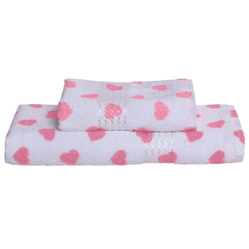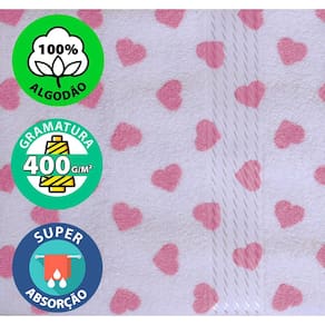Jogo de toalhas com toque macio e excelente absorção. Com estampa de corações, deixando o seu ambiente romântico e delicado. Mais conforto e qualidade para o seu dia!