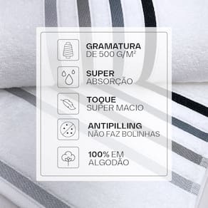 Alta capacidade de absorção Toque extra macio Fios penteados 100% algodão Excelente gramatura Tecnologia Antipilling (não forma bolinhas)