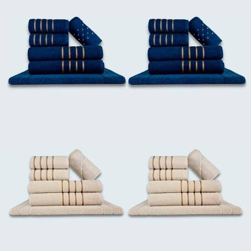Jogo De Toalhas 24 Pçs Coleção Dubai 100% Algodão Az+bg - Única