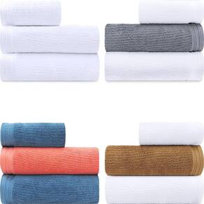 Este kit contêm 3 peças: 01 Toalha de Rosto (48cm x 80cm) 02 Toalhas de Banhão (86cm x 150cm)