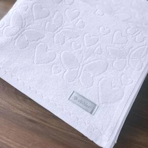O tecido em Jacquard aveludado possui um design de corações e borboletas em alto relevo que adiciona um visual elegante e delicado às peças, conferindo um charme especial ao seu banheiro.