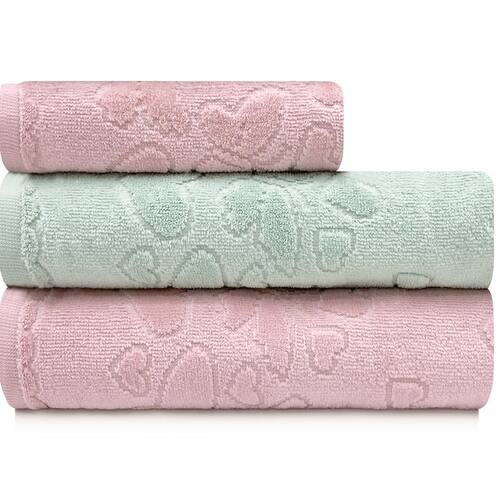 Design único e encantador O tecido em Jacquard aveludado possui um design de corações e borboletas em alto relevo que adiciona um visual elegante e delicado às peças, conferindo um charme especial ao seu banheiro.