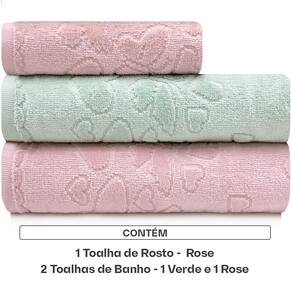 Este kit contém: 02 Toalhas de Banho (70cm x 140cm) 01 Toalha de Rosto (50cm x 80cm) Características: 100% Algodão Gramatura: 400g/m² Toque macio e aveludado Pré-lavada e pré-encolhida Ótima absorção Instruções de Lavagem: Lavar com temperatura máxima de 60°C Não alvejar Secar em temperatura baixa Passar com temperatura máxima de 150° Não limpar a seco