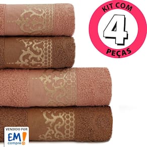 Este jogo contém 4 peças: - 02 Toalhas Rosto (50cm x 80cm) - 02 Toalhas Banhão (75cm x 1,50m)