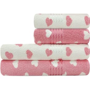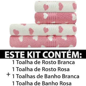 Este jogo contém 4 peças: 02 Toalhas Rosto (50cm x 80cm) 02 Toalhas Banho (70cm x 140cm)