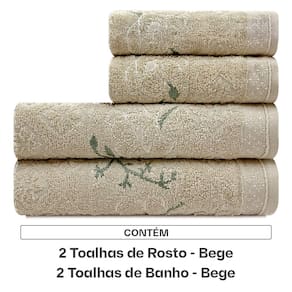 Jogo De Toalhas 4 Peças - Banho e Rosto Algodão Antipiling Yuna Karsten - Emcompre - Creme