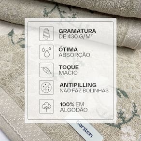 Além disso, a toalha Yuna é confeccionada em fios cardados, com 100% algodão (exceto na barra decorativa), para uma excelente absorção. E o acabamento pré-encolhido evita variação de tamanho após a primeira lavagem.
