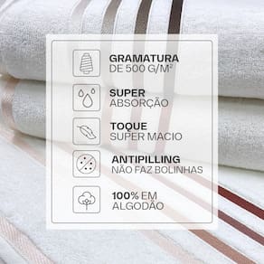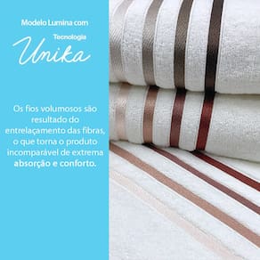 Carateristicas: - Alta maciez e conforto - Barras coloridas e lisas - Corpo trabalhado e liso - Fio Penteado - Antipilling - Ótima absorção - Toque macio - Tecnologia Unika