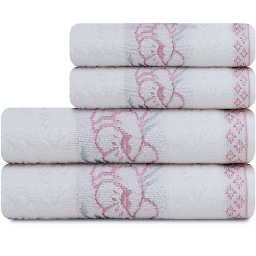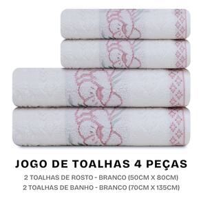 Jogo De Toalhas 4 Peças Banho Rosto Algodão Yuna Karsten - Branco