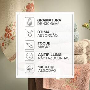 Além disso, ela passam pelo processo de pré-encolhimento e possuem o antipilling que é um tratamento para retirar fibras soltas no tecido e evitar a formação de pillings (bolinhas), com esses acabamentos as toalhas têm maior resistência às lavagens e ao uso diário. Com cores neutras, deixando o seu ambiente mais elegante e sofisticado.