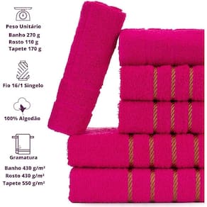 Jogo De Toalhas 6 Pçs - 2 Banho 2 Rosto 2 Piso Montreal 100% Algodão Rosa