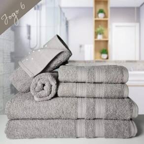 Jogo de Toalhas 6 pçs Luxo 2 Banho 2 Rosto 2 Tapete Cinza