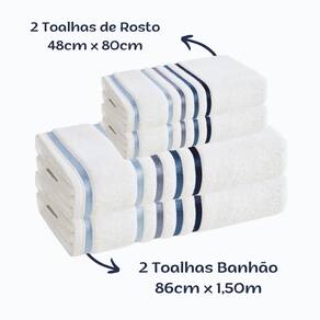 02 Toalhas de Rosto, tamanho 48cm x 80cm Cor: Branca 02 Toalhas de Banho Grande, tamanho 150cm x 86cm Cor: Branca Gramatura 500g/m²