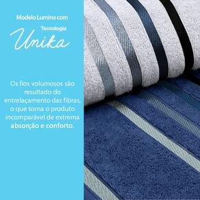 Essa toalha clássica, a queridinha do Brasil, destaca-se por seu design moderno, com listras formando um contraste muito elegante na barra decorativa que resulta em um toque sofisticado. Além da beleza, a Toalha Lumina incorpora tecnologia de ponta.