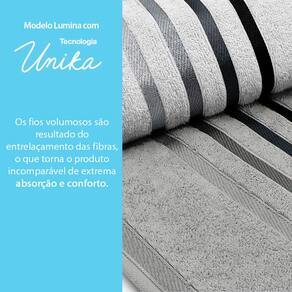 Essa toalha clássica, a queridinha do Brasil, destaca-se por seu design moderno, com listras formando um contraste muito elegante na barra decorativa que resulta em um toque sofisticado. Além da beleza, a Toalha Lumina incorpora tecnologia de ponta.