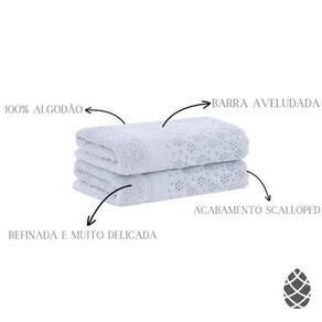 Jogo 2 peças toalhas lavabo lovely. Refinada e muito delicada, a toalha lovely possui toda a sofisticação das peças trabalhadas em bordado inglês. Sua barra aveludada recebe a aplicação do bordado em moderno floral pontilhado, conferindo beleza, elegância e feminilidade. E o acabamento scalloped a torna muito decorativa. Em felpas ultra volumosas, o modelo possui maciez diferenciada e brilho natural, com o toque maleável e delicioso do puro algodão. Excelente para compor enxovais confortáveis e de alto padrão, com muito mais bem-estar. Toalhas pré-lavadas e pré-encolhidas. Acabamento especial buddemeyer que confere alta capacidade de absorção, oferecendo maciez, toque delicado e volume acentuado, além de brilho natural que realça as cores. A buddemeyer é referência em qualidade e estilo.