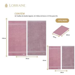 Contém: 2 toalhas de banho 90 x 150cm 2 toalhas de rosto 48 x 85cm 1 toalha para pés piso 48 x 80cm