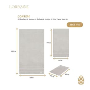 Conteúdo da embalagem: Contém: 2 toalhas de banho 90x160cm + 2 toalhas de rosto 48x90cm + 1 toalha de piso 48x80cm.