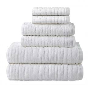 O conjunto inclui 2 toalhas de banho (76 x 137 cm), 2 toalhas de mão (41 x 71 cm) e 2 toalhas de rosto (33 x 33 cm), todas confeccionadas em jacquard terry com fios finos e zerotwist, oferecendo um loft premium. Com um peso de 600 GSM, essas toalhas garantem maciez e absorção superiores sem volume excessivo.