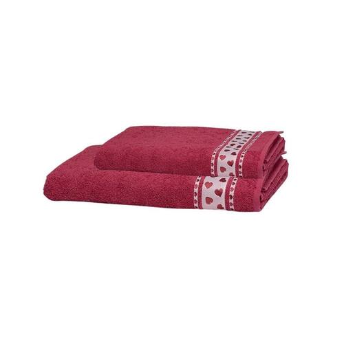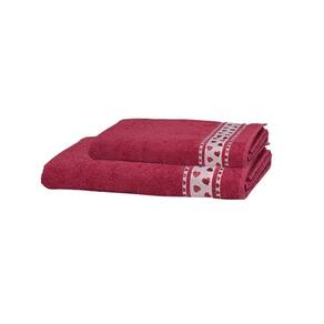 Jogo de toalhas dhler jacquard premium corações banho 2 pçs Cor: carmim Jogo de banho 2 peças jacquard premium fj-6987 estampada corações