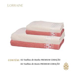 Jogo de toalhas dhler jacquard premium corações banho 4 pçs Cor: creme/rosa Jogo de banho 4 peças jacquard premium fj-6987 estampada corações