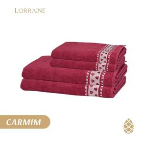 Jogo de toalhas dhler jacquard premium corações banho 4 pçs Cor: carmim Jogo de banho 4 peças jacquard premium fj-6987 estampada corações