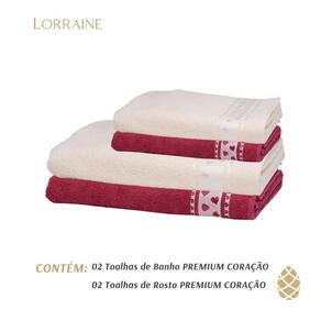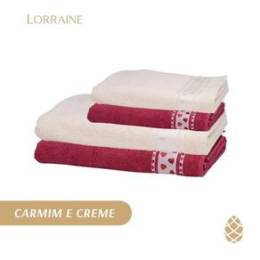Jogo de toalhas dhler jacquard premium corações banho 4 pçs Cor: carmim/creme Jogo de banho 4 peças jacquard premium fj-6987 estampada corações