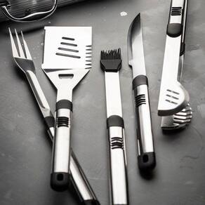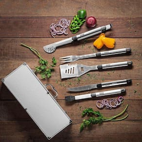 Uma tradição que começou nos pampas e hoje faz parte do cardápio de todo o Brasil, conquistando também o mundo, o churrasco é a celebração clássica do final de semana. O Jogo de Utensílios para Churrasco com Maleta Grill 5 Peças, é sinônimo de facilidade e praticidade. Com itens que auxiliam desde o preparar até o servir o seu churrasco. Produzidos em aço inoxidável e madeira, garantem maior durabilidade e resistência, mesmo com o uso intenso.