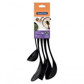 Para garantir facilidade na hora de preparar e servir suas refeições, você deve contar com o Jogo de Utensílios Tramontina Ability em Nylon Preto 05 Peças! Com ele, você tem uma variedade de itens para preparar e servir os melhores pratos de forma prática e versátil. Eles são produzidos em nylon na cor preta, são resistentes, duráveis e perfeitos para utilização em superfícies antiaderentes, pois não as danificam. Os utensílios suportam temperaturas de até 180 C e podem ir à máquina de lavar louças, deixando suas tarefas na cozinha ainda mais fáceis!