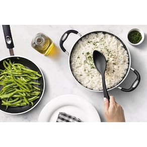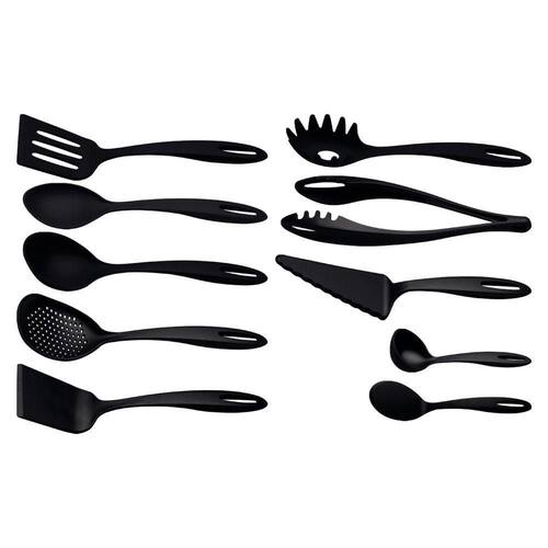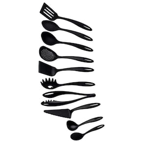O jogo de utensílios Tramontina Ability em nylon preto 10 peças é a escolha perfeita para equipar a sua cozinha com praticidade e estilo. Ele é composto por 10 peças, e cada uma delas é ideal para a utilização em superfícies antiaderentes e cerâmicas, pois não as danifica. Os utensílios são capazes de suportar temperaturas de até 180 C, garantindo alta durabilidade e resistência. Com cabos equipados com furo passante, ele pode ser facilmente pendurados na sua cozinha, mantendo-os sempre ao alcance das suas mãos e servindo também como item decorativo. Ele ainda pode ser lavado na máquina de lavar louças, facilitando o seu dia a dia e proporcionando mais tempo livre para você aproveitar com a família e amigos!