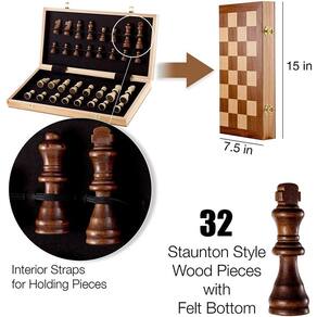 O xadrez é um antigo jogo de estratégia que assumiu suas primeiras formas por volta do século VI. Aproveite este jogo antigo no grande conjunto de xadrez dobrável de madeira de 15" x 15" de alta qualidade do Chess Armory. Este lindo tabuleiro de xadrez vem com peças no estilo Staunton e é o tabuleiro de tamanho perfeito para iniciantes e jogadores experientes. Um guia de início rápido de xadrez vem com cada conjunto para aqueles que são novos no jogo. O interior da placa inclui tiras de feltro para prender suas peças, e as dobradiças ficam planas com a prancha para evitar arranhar as superfícies de jogo.