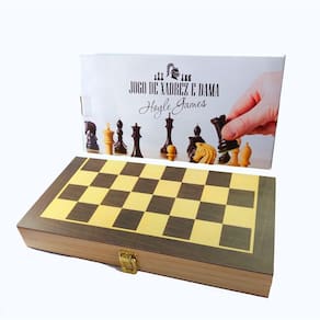 Jogo de xadrez - Tabuleiro feito em madeira - Acompanha regras do jogo de xadrez - Tamanho do tabuleiro: 39x39 centímetros., - Tamanho da casa: 4x4 centímetros, - Espessura do tabuleiro 2,5 centímetros, - Peças em madeira com excelente acabamento, - Tamanho das peças: - Rei: 8,0 cm, - Rainha: 7,0 cm, - Bispo: 5,5 cm, - Cavalo: 4,5 cm, - Torre: 4,0 cm, - Peão: 3,5 cm. - Pedra da dama: 2,2cm