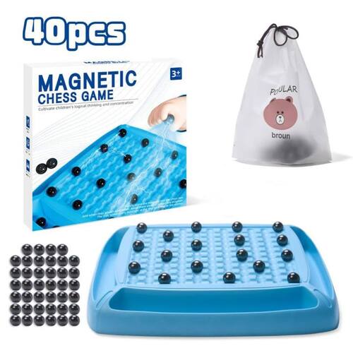 ?Jogo de xadrez magnético?: Desafie as forças da natureza com diversão magnética e estratégica. Posicione estrategicamente seus ímãs para evitar atrair outros ímãs. Um jogo de diversão sem fim. - ?Jogo de xadrez magnético?: Desafie as forças da natureza com diversão magnética e estratégica. Posicione estrategicamente seus ímãs para evitar atrair outros ímãs. Um jogo de diversão sem fim. - ?Melhore o pensamento lógico?: desenvolva habilidades de pensamento crítico criando estratégias contra oponentes e ajustando layouts neste jogo de xadrez magnético. Inicie experiências de aprendizagem precoces para promover o pensamento lógico. - ?Divertido jogo multijogador?: o jogo oferece uma escolha de modos para dois jogadores e multijogador projetados para melhorar a diversão com amigos e familiares. É uma atividade perfeita para criar memórias duradouras e compartilhar momentos agradáveis juntos. - ?Multifuncional e portátil?: Se você estiver em movimento, acampando ou em uma reunião de família, este jogo de xadrez magnético é o seu companheiro perfeito. Vem com uma bolsa de armazenamento conveniente para facilitar o transporte e armazenamento, garantindo que você possa desfrutar da emoção da diversão do tabuleiro de xadrez a qualquer hora, em qualquer lugar. Prepare-se para inúmeras horas de diversão estratégica! - ?Lista de embalagem?: Inclui 40 magnéticos, um tabuleiro de xadrez e uma bolsa de armazenamento.