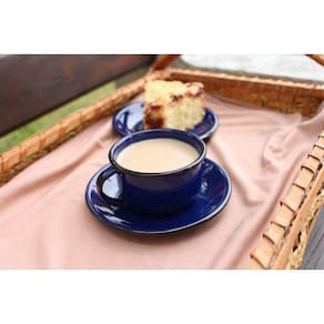 Jogo de Xícara de Chá 06 Peças Esmaltada Azul 240 ml Ewel