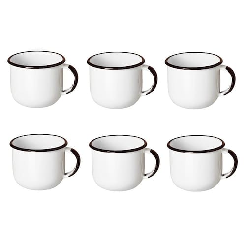 Jogo de Xícara de Chá 06 Peças Esmaltada Branca 240 ml Ewel