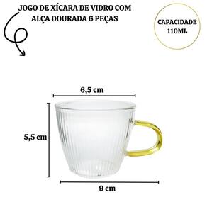 JOGO DE XÍCARA DE VIDRO COM ALÇA DOURADA 6 PÇS 110ML - V668-1
