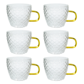 JOGO DE XÍCARA DE VIDRO COM ALÇA DOURADA 6 PÇS 110ML - V669-1