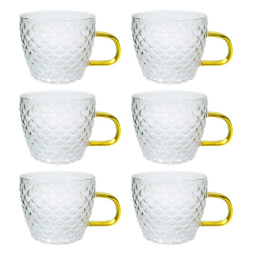 Um conjunto de xícaras transparentes com 6 peças apresenta uma elegância sutil e moderna. Cada xícara é confecionada em material transparente de alta qualidade, proporcionando uma visão clara do conteúdo interno. A transparência destas xícaras adiciona um toque contemporâneo à experiência de servir e apreciar a bebida. O design é delicado e ergonomicamente pensado, oferecendo uma pegada confortável. As bordas são finas e suaves. promovendo uma sensação de requinte ao tocas os lábios. A capacidade de cada xícará é equilibrada, garantindo uma quantidade adequada de bebida, enquanto a transparência permite que as cores e texturas da bebida se destaquem de maneira atraente.