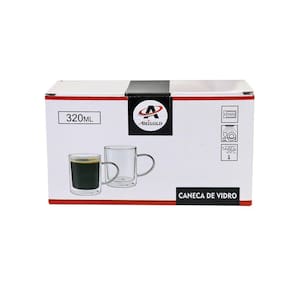JOGO DE XICARA DE VIDRO DUPLA CAMADA 320ML 2 PEÇAS - 3228.
